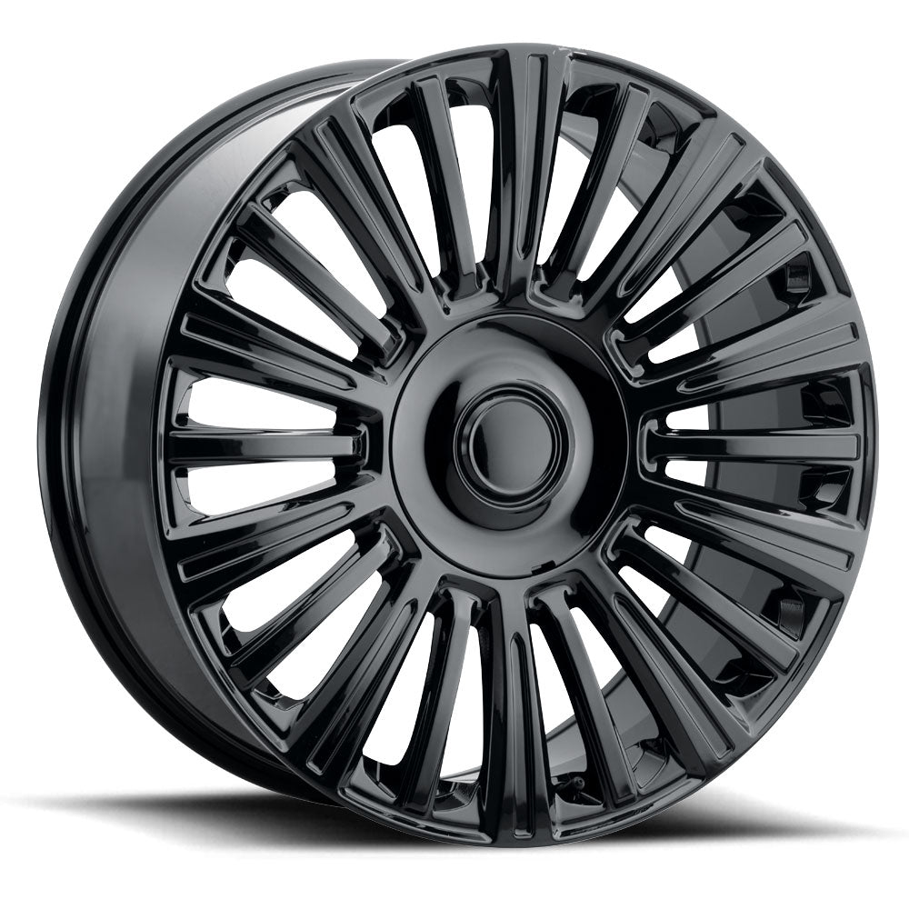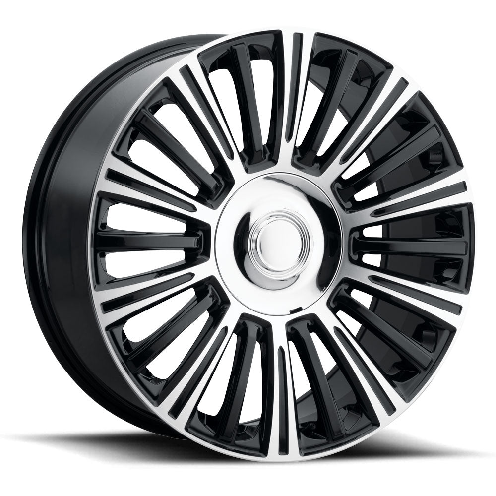 This multi-spoke design comes in chrome, gloss black and gloss black machined face and accepts OEM cap.