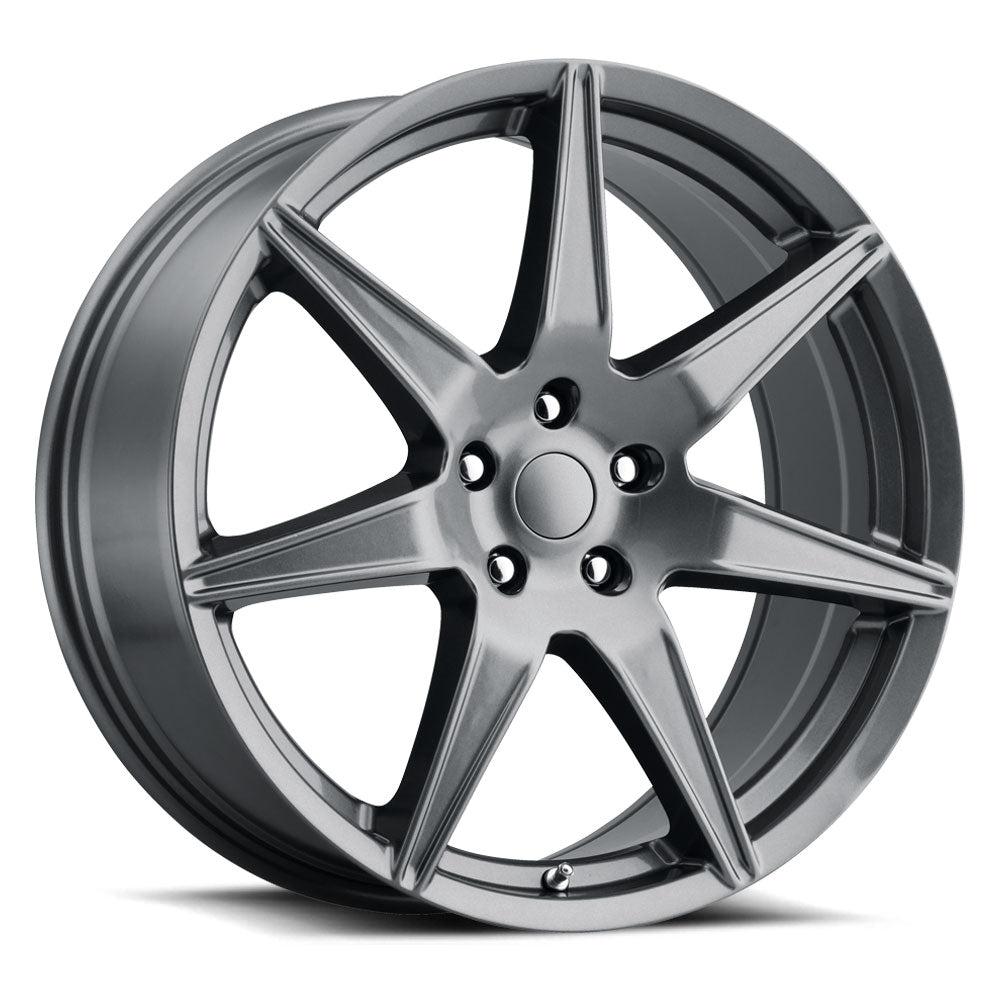 This wheel is available in multiple finishes, staggered sizes, and accept OEM caps.